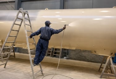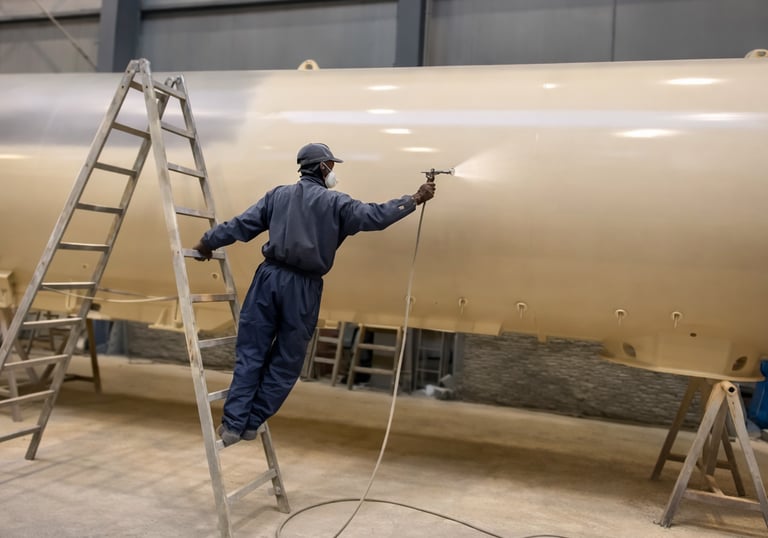 Aplicação de revestimentos protetores e/ou decorativos em superfícies industriais, com o objetivo de proteger contra corrosão, desgaste e agentes externos, melhorando também o aspeto final do equipamento ou estrutura.